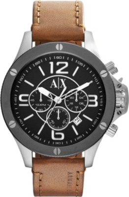 Image Name: Ax Armani Exchange Watch Mens Chronograph Dark Brown Leather Strap ...